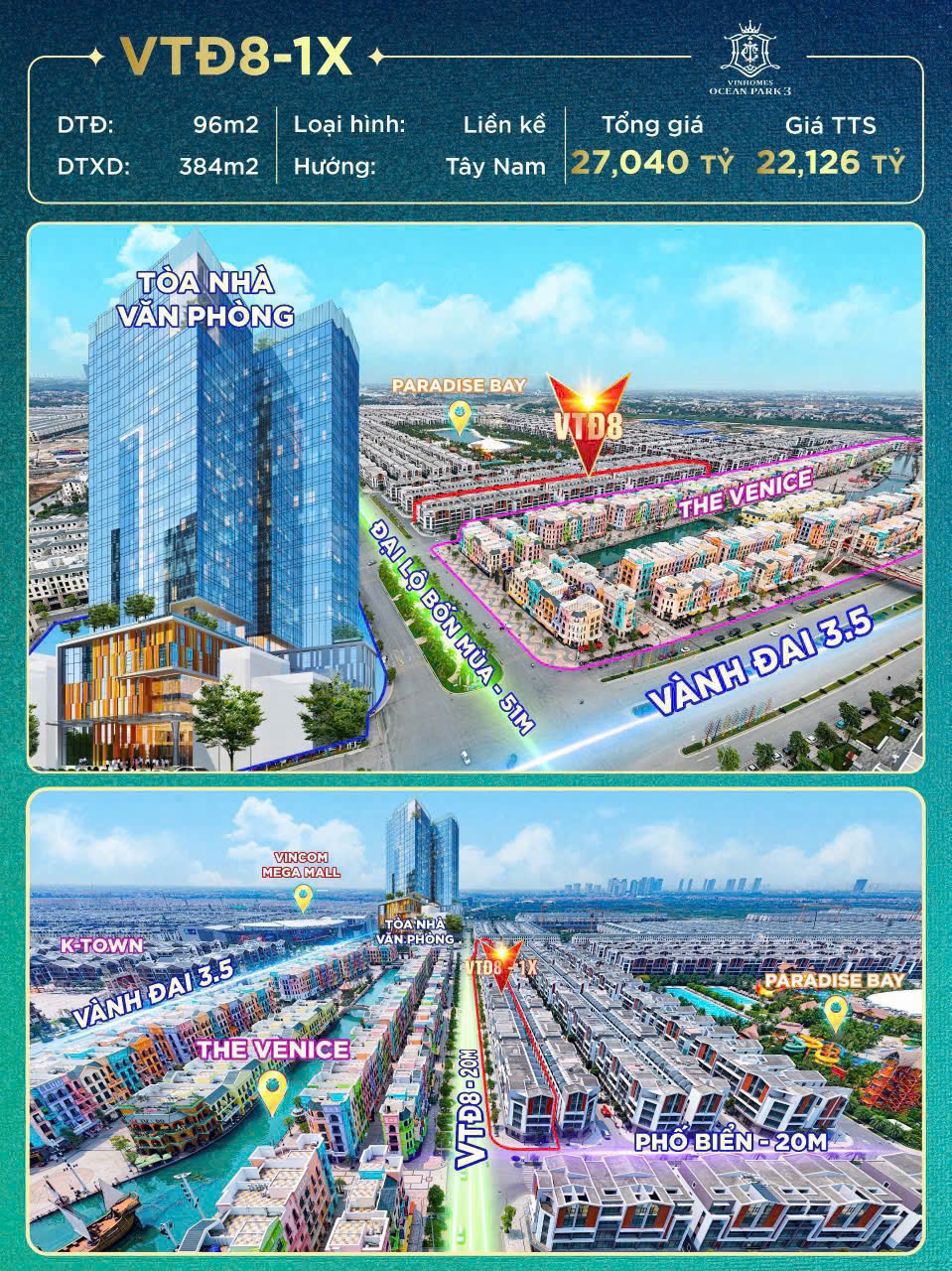 📌 Mặt sông Venice, Cạnh Vincom, Chung cư, Toà văn phòng....