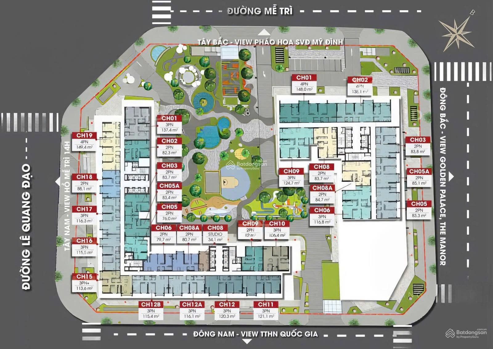 - Căn 4PN: 139m²; 149m².